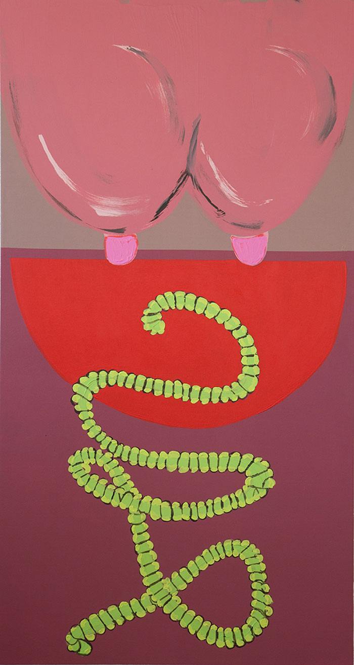 The domestic narrative paintings are drawn from specific scenes I’ve witnessed in both my own and friend’s families. The horror and humor of domestic life is revealed as abstracted organic shapes, meant to represent specific characters engaged in a larger narrative. The title hints at a possible story for the viewer to imagine.