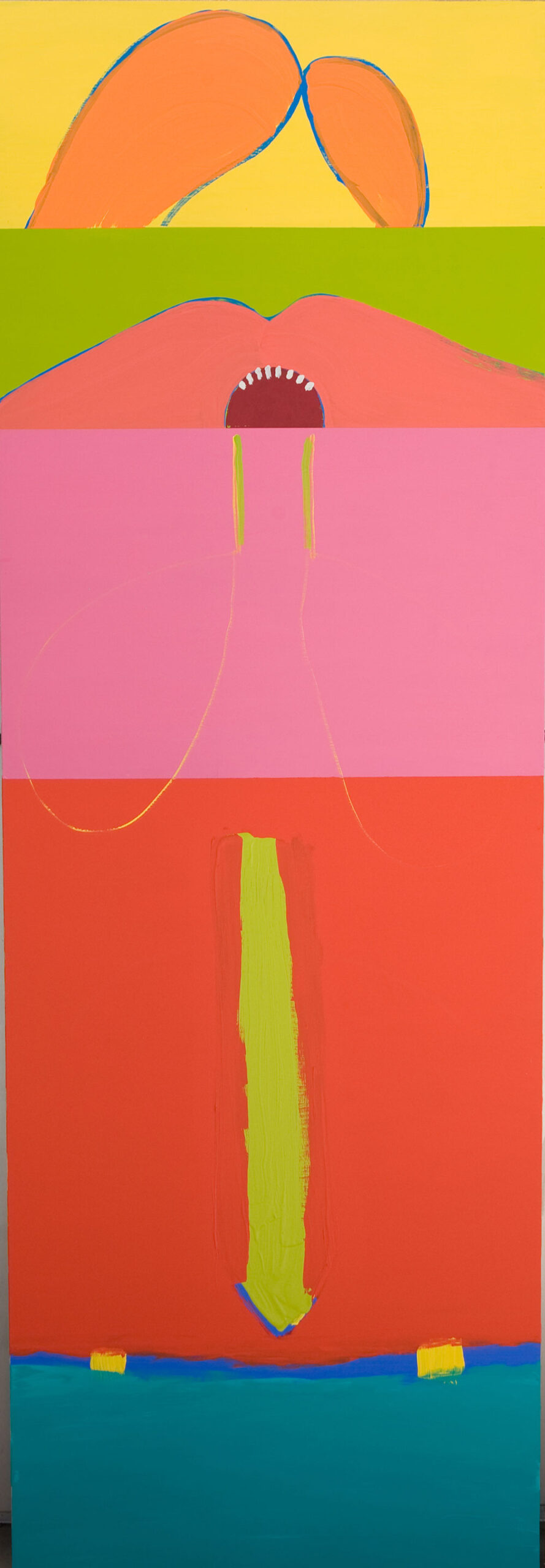 These paintings were inspired by my secret desire to protect my teenage son during his tumultuous senior year doing high school on Zoom from his bed, isolated from anything resembling normalcy due to Covid. Two of the paintings hung on each side of my son’s bedroom door for over a year. He’s thriving now, so it must have worked!