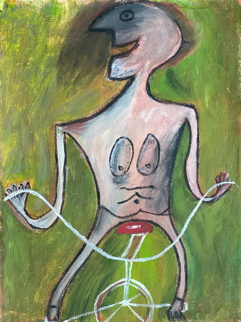 The domestic narrative paintings are drawn from specific scenes I’ve witnessed in both my own and friend’s families. The horror and humor of domestic life is revealed as abstracted organic shapes, meant to represent specific characters engaged in a larger narrative. The title hints at a possible story for the viewer to imagine.