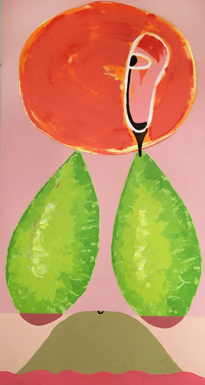 The domestic narrative paintings are drawn from specific scenes I’ve witnessed in both my own and friend’s families. The horror and humor of domestic life is revealed as abstracted organic shapes, meant to represent specific characters engaged in a larger narrative. The title hints at a possible story for the viewer to imagine.