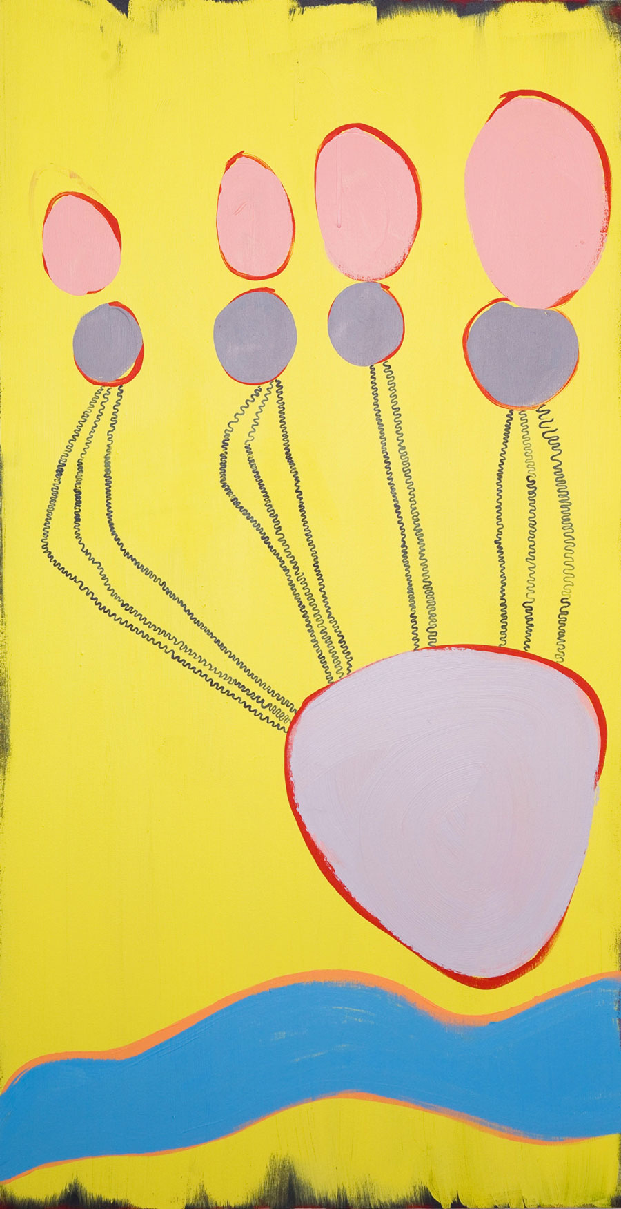 The domestic narrative paintings are drawn from specific scenes I’ve witnessed in both my own and friend’s families. The horror and humor of domestic life is revealed as abstracted organic shapes, meant to represent specific characters engaged in a larger narrative. The title hints at a possible story for the viewer to imagine.