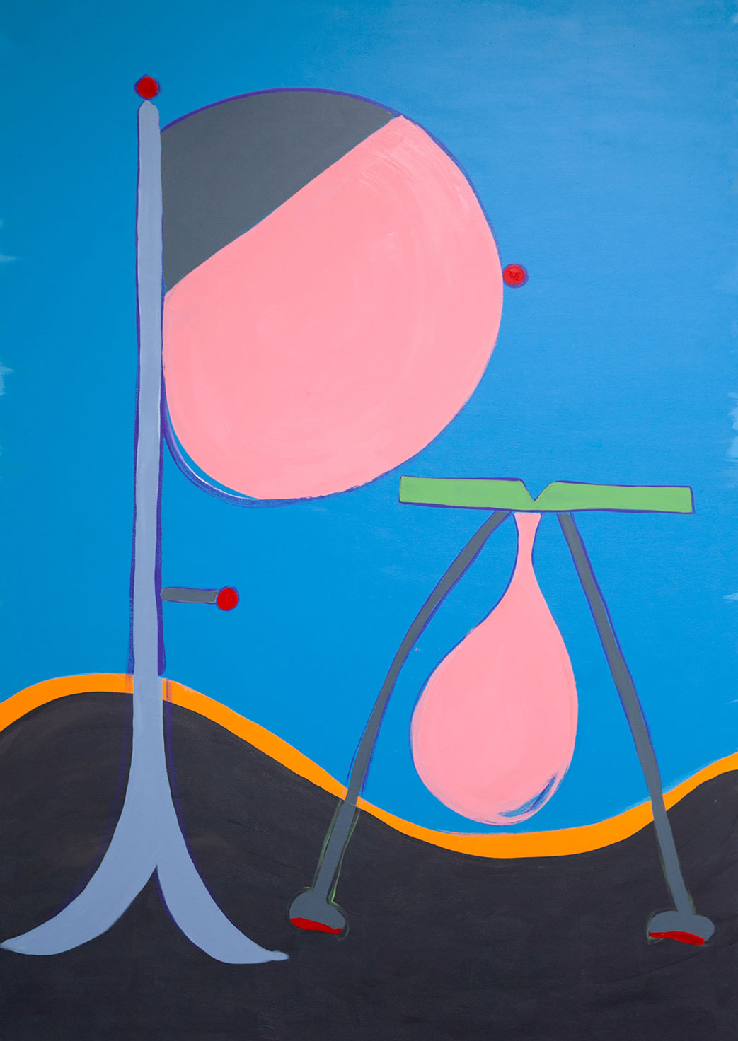 The domestic narrative paintings are drawn from specific scenes I’ve witnessed in both my own and friend’s families. The horror and humor of domestic life is revealed as abstracted organic shapes, meant to represent specific characters engaged in a larger narrative. The title hints at a possible story for the viewer to imagine.