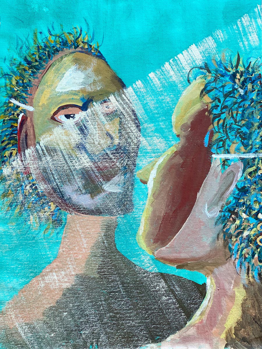 The works probe our inner, submerged states of being. They enact dramas both real and imagined. The paintings are suspended between surreal and cartoonish alluding to both whimsy and fright.